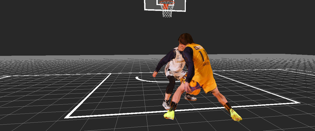 撮影された複数視点のデータは高度な技術によって処理され、選手の動作を忠実に3D映像として再現しています。